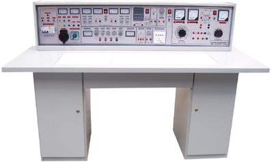 智能电工电子电力拖动(带直流电机、三相可调)实验台,具有较完善的安全保护措施,较齐全的功能(详见实验台结构简介)。实验桌中央配有通用电路板,电路板注塑而成,表面布有九孔成一组相互联通的插孔,元件盒在其上任意拼插成实验电路,元件盒盒体透明,直观性好,盒盖印有永不褪色元件符号,线条清晰美观。盒体与盒盖采用较科学的压卡式结构,维修拆装方便。元器件放置在实验桌下边左右柜内,大大提高了管理水平,规划化程度,大大减轻了教师实验准备工作。