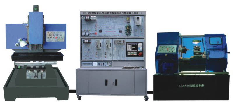 KY、CNC数控车/铣床综合智能实训考核装置适合高等职业学校、中等职业学校的机电设备安装与维修、机电技术应用、电气运行与控制、电气技术应用、机械加工等专业和非机电类专业的必修课程模块《数控设备维修》、《数控加工技术》或选修课程模块、《机床电路维修》的教学与实训。 KY、CNC数控车/铣床智能综合实训考核实验台也适合技工学校机电类专业《电气设备维修》《数控设备维修》课程的实习,还适合职业培训学校的安装、维修电工高级班,安装、维修电工技师班,安装、维修电工高级技师班和铣床工中、高级和技师的培训和实操。 一、产品组成部分 KY、CNC数控车/铣床综合智能实训考核装置是由车床控制系统和铣床控制系统组成:机床电气控制接口板;主轴变频高调整实验模块和三相电机与编码器组;全数字交流伺服驱动及伺服电机输入输出模块;三相少进驱动及步进电机输入输出模块;自动刀架控制模块;开关电源;配套KY6135A型实训娄控辐床和KY 125A型实训数控铣床等组成。 二、实验台特点: 1、一台主机内置车床控制系统和铣床控制系统。可随时切换控制系统控制6135A车床和125A铣床。 2、实验台X、Y轴采用步进驱动单元,Z轴采用伺服驱动单元 3、车床控制电路和铣床控制电路全部在实验台在面板上直观布置,方便设计操作。 4、车床二维图形仿真演示;铣床三维线条图形演示。 5、拥有数控典型故障设置及排除实验。 三、技术性能: 1、输入电源:三相四线制380V交流电源。 2、结构:考核柜为铁质钣金喷塑结构,坚固耐用; 3、工作环境:温度-100-+400C。 4、整机功耗:<3KW 5、考核柜尺寸:1370×600×1890mm
