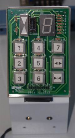 模型电梯可进行自动运行,控制方式为:在第一层的情况下,同时按下开门和关门键,此时将开启自动运行,运行方式为从第一层至第七层然后从第七曾至底层,以此重复循环;如果想停止自动运行,则可以再次同时按下开门和关门按钮,电梯将此次循环工作完之后再停止。